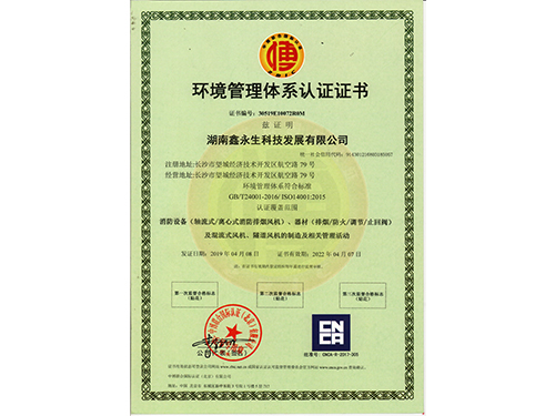 • 環境管理認證體系證書